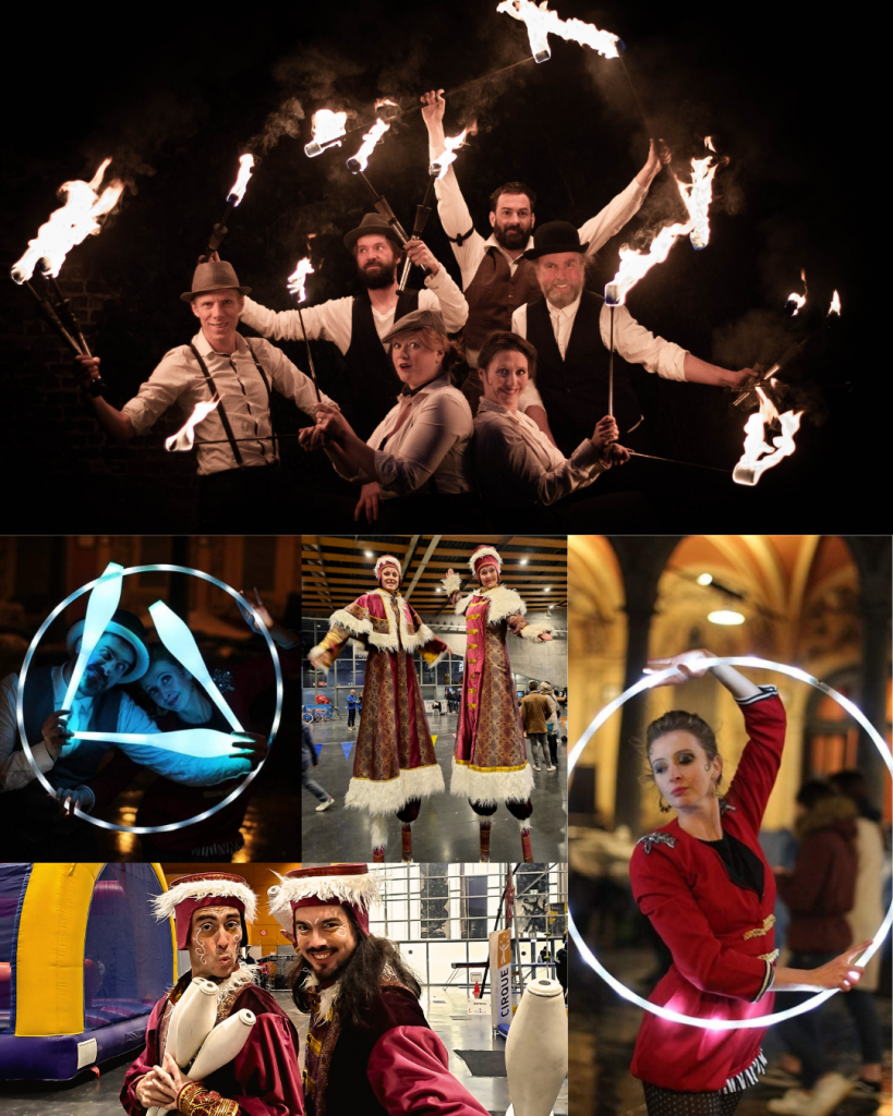 - des jongleurs : massues, balles, bâton du diable, couteaux, hula hoop… Prestation lumineuse ou enflammées sur demande