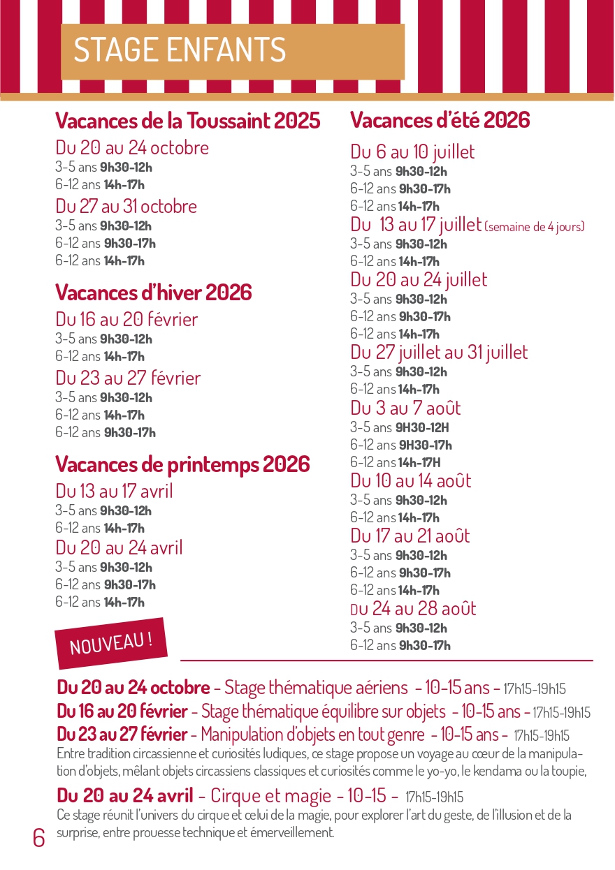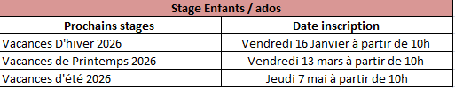 Liens inscriptions stages de Toussaint 2025 (activation le vendredi 19 septembre à 10h)