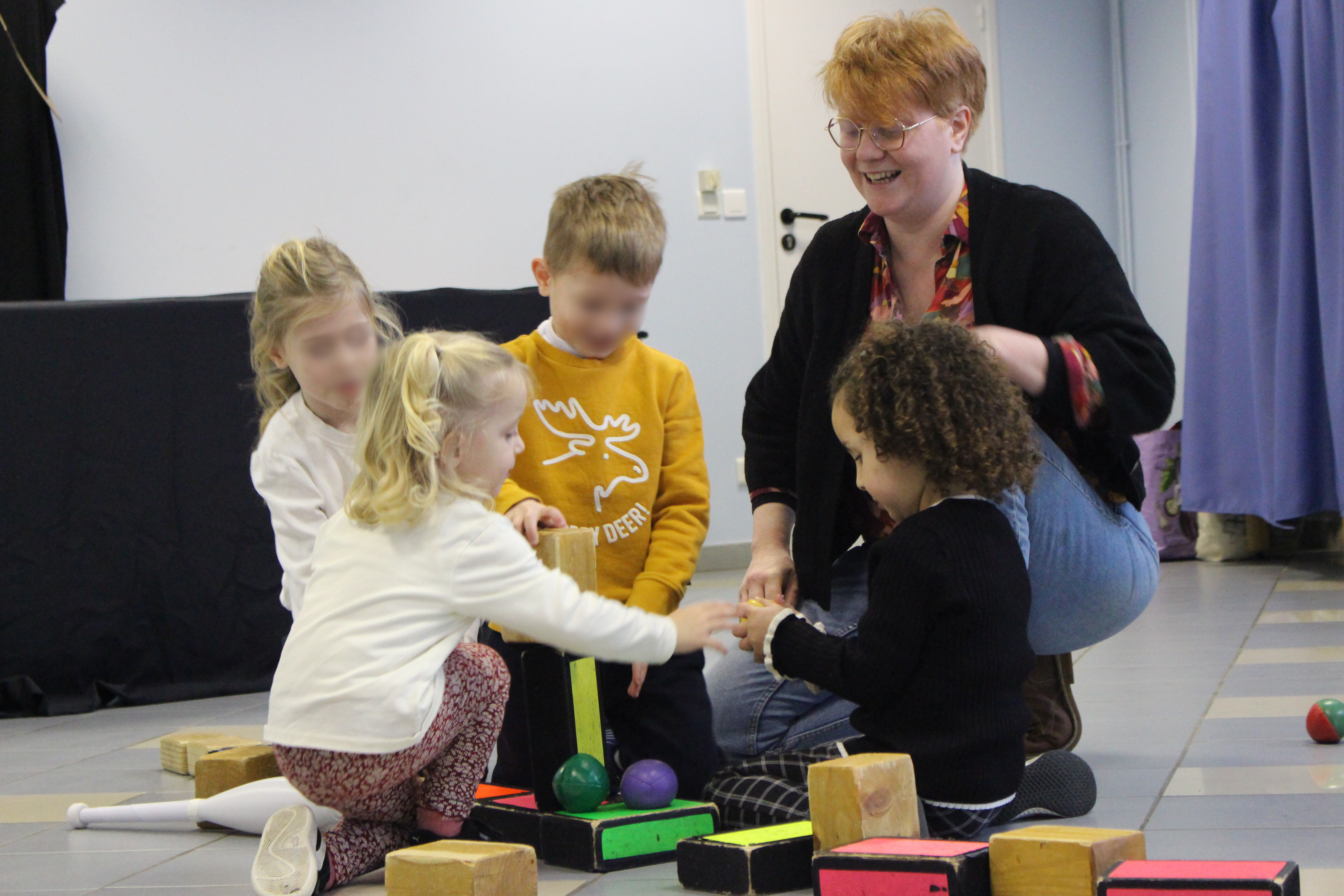 Les personnages du livre, aux formes géométriques, se prêtent naturellement à l’univers circassien : balles, boîtes à cigares, massues et anneaux deviennent les supports d’une narration visuelle et poétique. Ces formes, familières dès l’enfance, évoquent les jeux d’assemblage et rappellent avec humour que « le carré ne rentrera jamais dans le rond ».